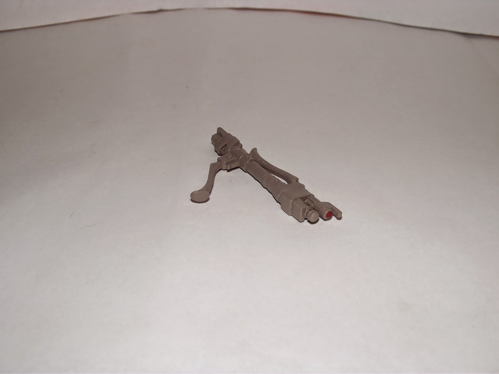 The gun is nicely sculpted in a solid, softer, plastic. It's a good looking little piece and suits the trooper nicely.